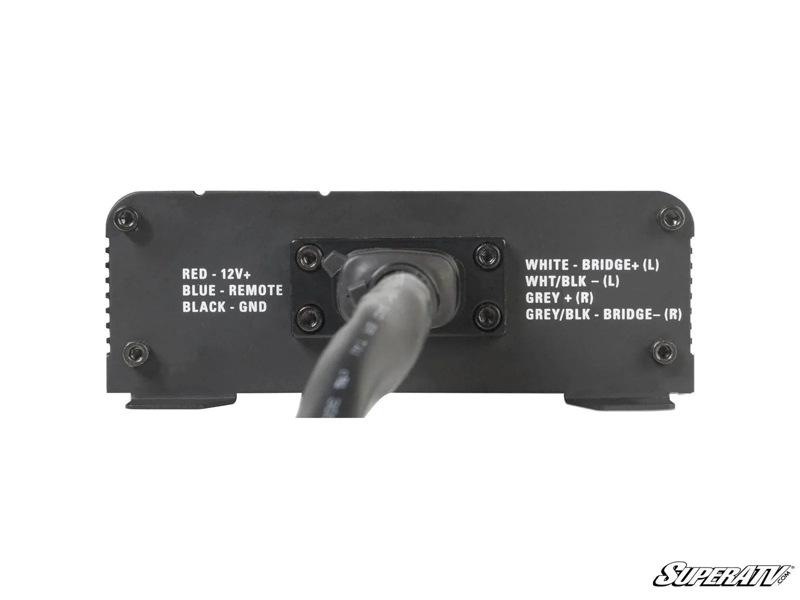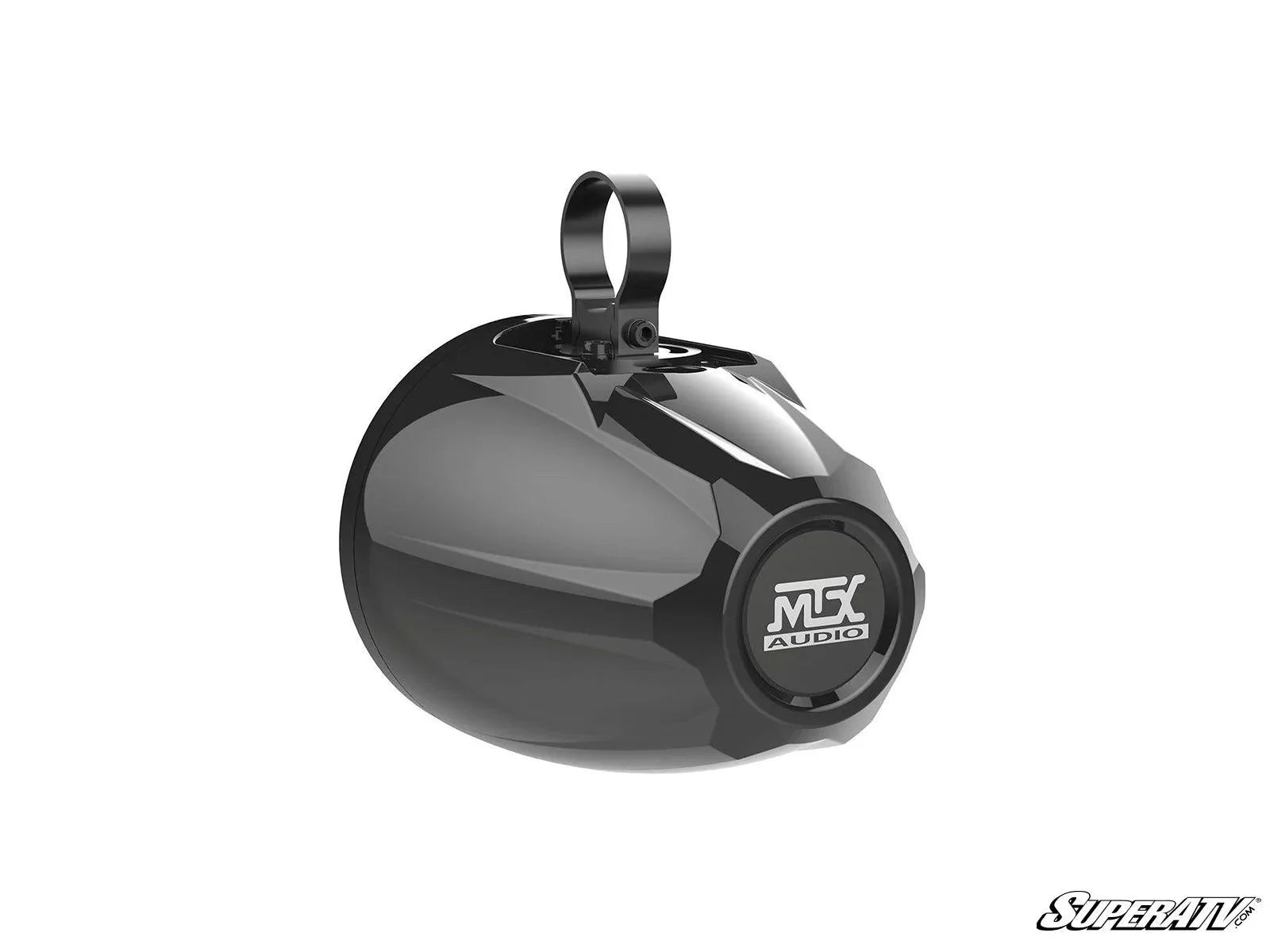 This kit comes with MTX’s MUD100-2 amplifier. It’s small, but it packs a major punch in the sound department! That small size makes it more convenient for mounting on smaller machines and it’s corrosion and weather-resistant for maximum longevity. And 200 watts RMS power is enough to run these speaker pods and then some.