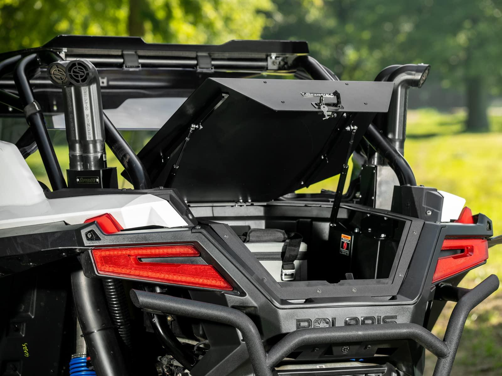 Your RZR loves a hill, but your cargo sure doesn’t. No matter how careful you are, something is sure to slide right off your bed onto the trail. Instead of retracing your steps to find it later, get SuperATV’s Polaris RZR PRO XP Trunk Bed Enclosure. It transforms your bed into a trunk to keep all your gear safe. Durable struts hold the trunk lid open too, so there’s no risk of crushing your fingers when you’re digging around for that thing you’re sure you packed but just can’t find. Whether you’re camping, mudding, or just hanging out with the gang, our trunk bed enclosure is the perfect addition to your RZR.