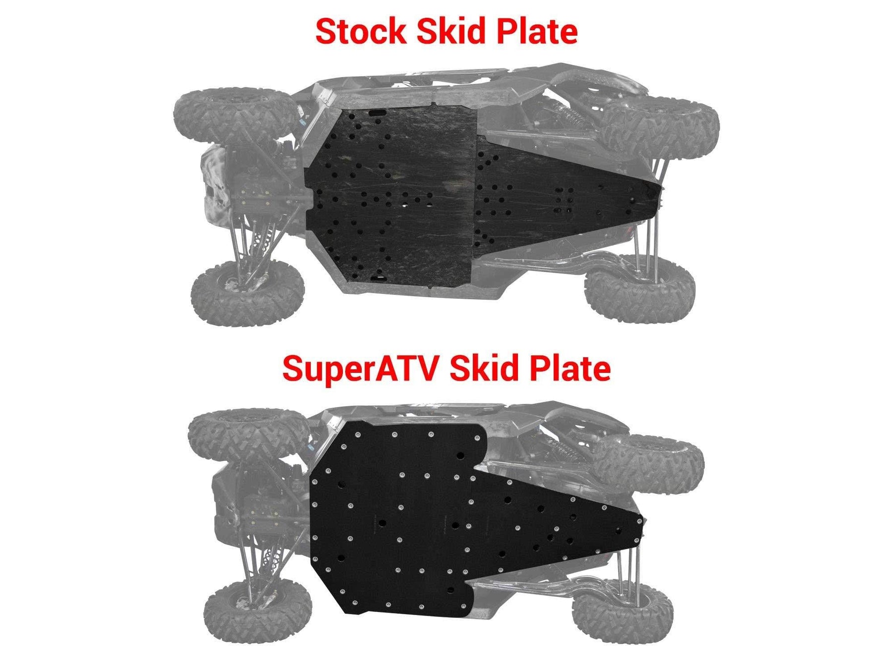 Protect your Can-Am Maverick X3’s undercarriage with a SuperATV ARMW Skid Plate. Our proprietary 1/2” ARMW is cut to fit your X3 perfectly. It’s tough enough to keep rocks, sticks, and debris from cracking, scratching, or penetrating your vehicle no matter how hard you hit. It’s smartly designed with drain ports so clean up is easy when you’re back on the trailer. Ride hard and have fun—with our skid plate it’s easier than ever.
