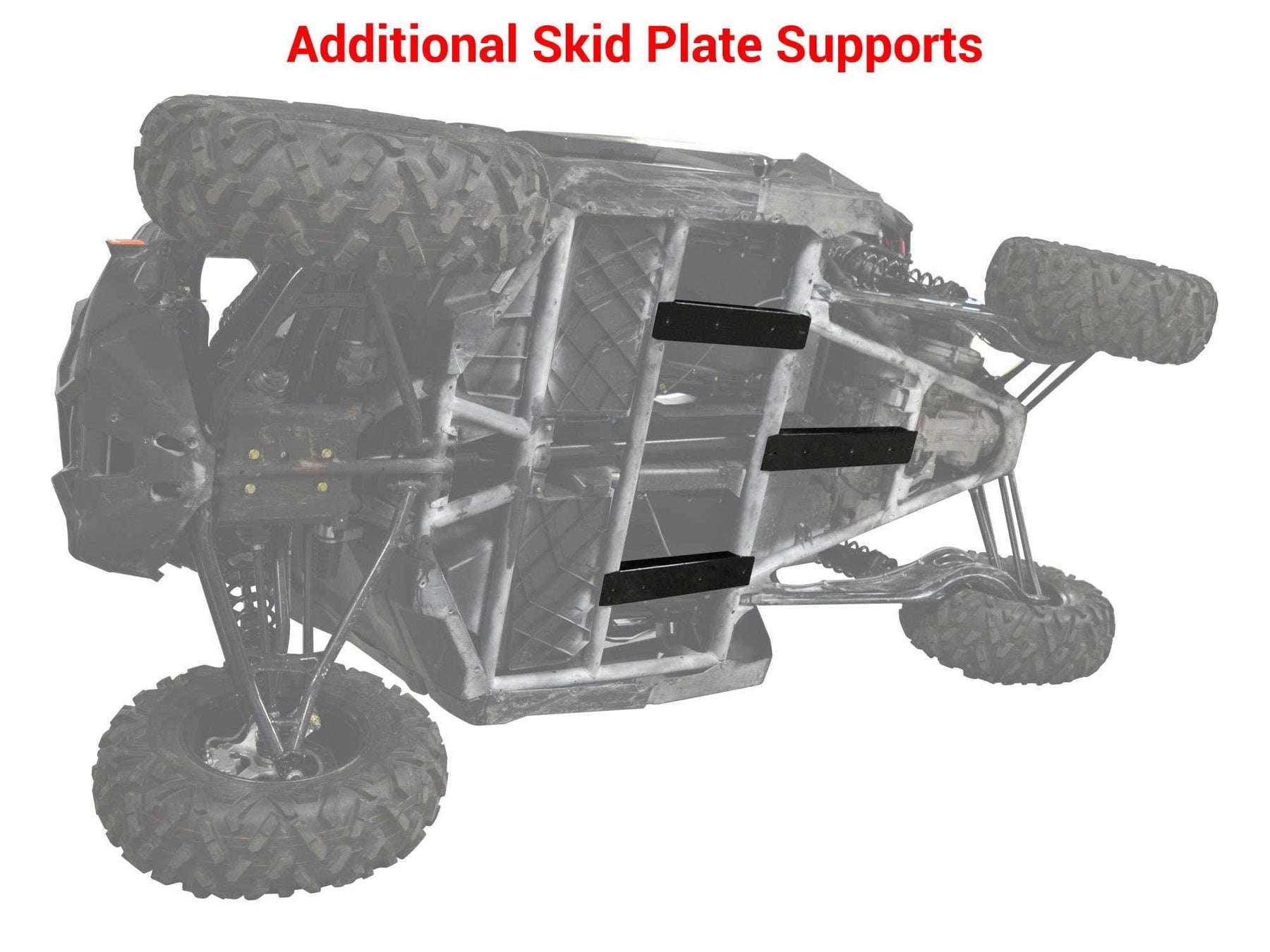 NOTE: When running the Can-Am Maverick X3 Frame Stiffeners and Gusset Kitwith the Can-Am Maverick X3 Full Skid Plate, the frame stiffener will replace the front section of the skid plate.