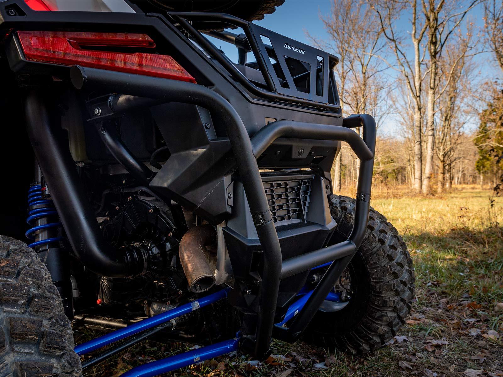 This rear brush guard is made of 1.75” diameter heavy-duty steel tubing. It’s impressively strong to begin with, but we add a protective powder coat for extra protection and UV resistance. With this much durability, you won’t have to think twice before tackling the obstacles ahead. From rocks to brush to abrasive desert sand, SuperATV has got you (and your bodywork) covered.