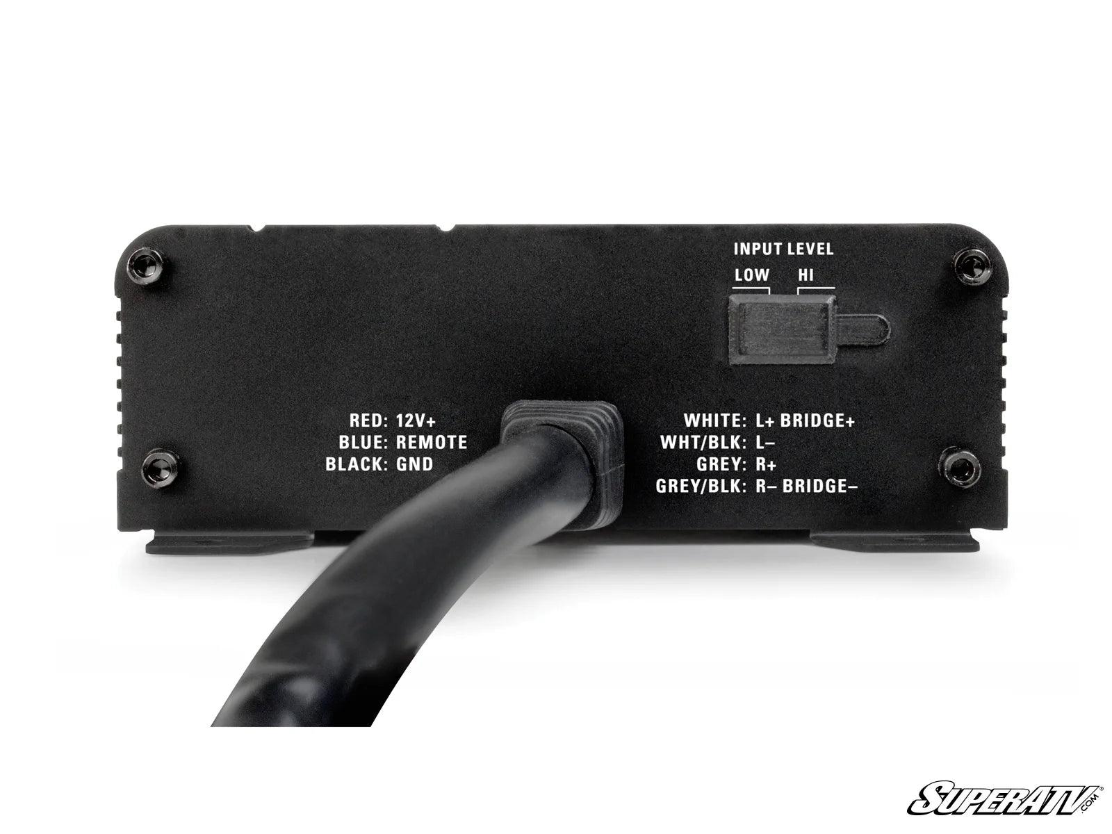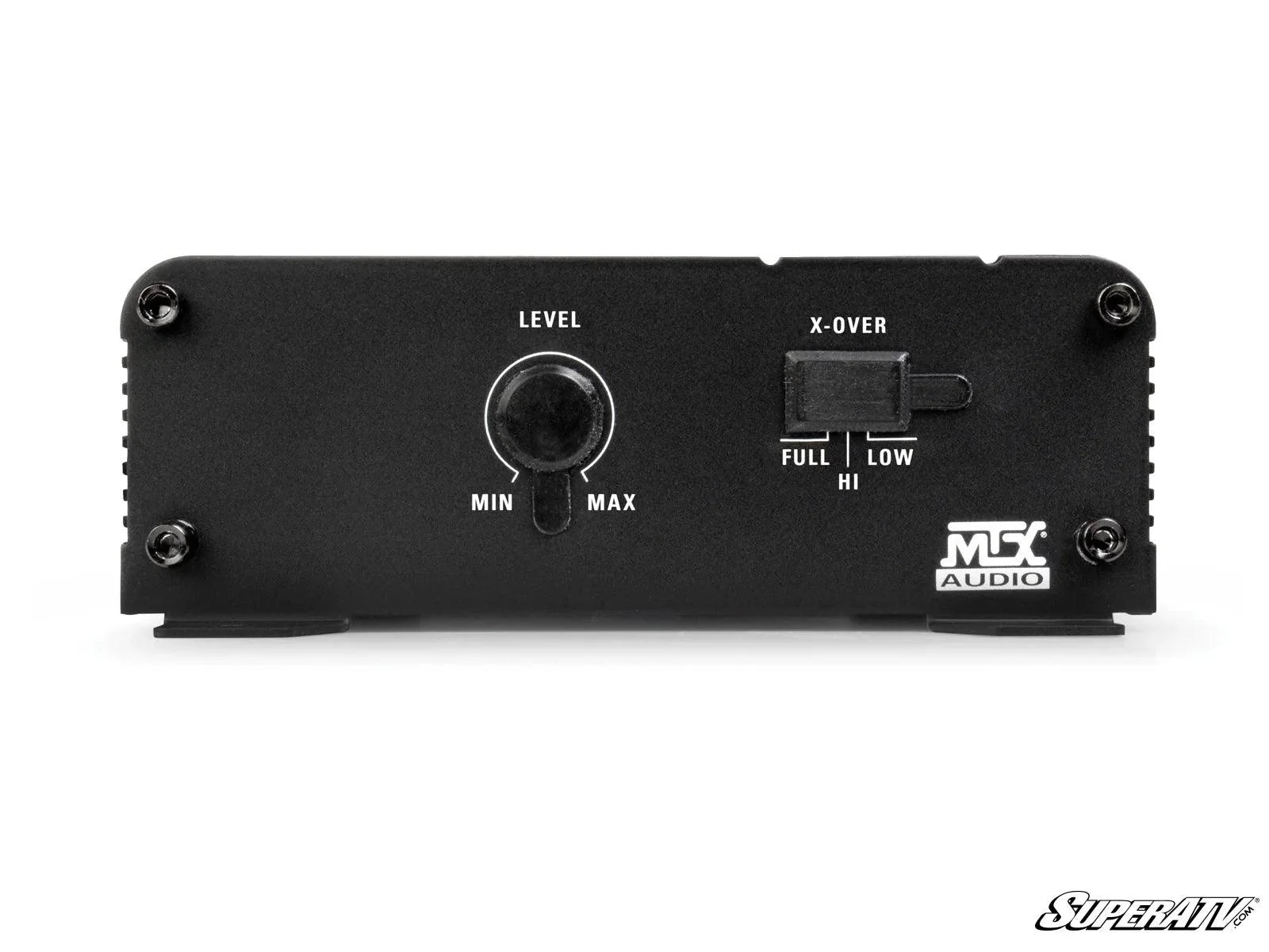 MTX designed this amplifier with the outdoors rider in mind. They use a coated circuit board and sealed control covers to protect the internal electronic components from corrosion. The power, ground, and signal wires don’t have to connect directly to the amplifier, providing an extra layer of protection against mud, dirt, and water.