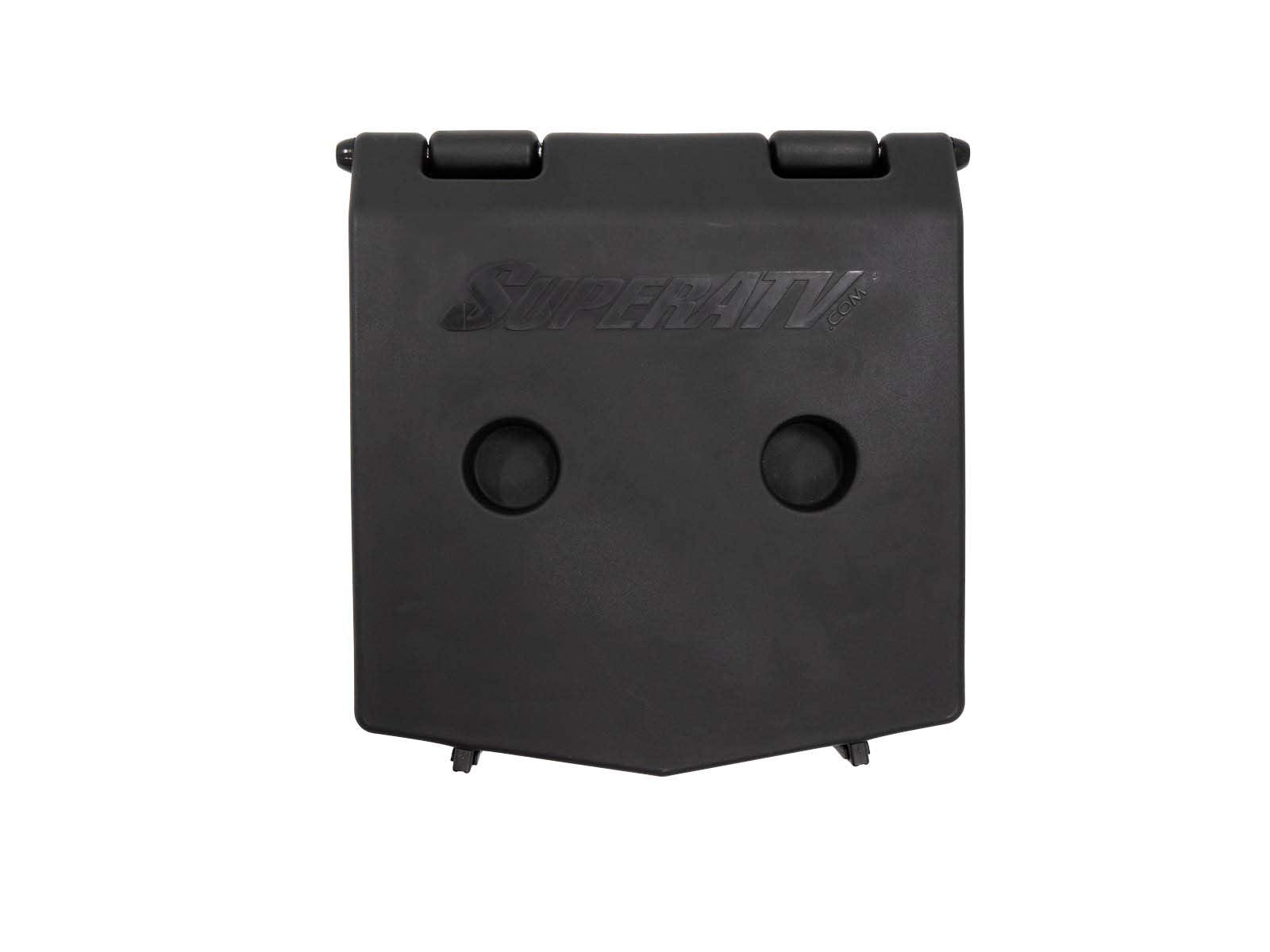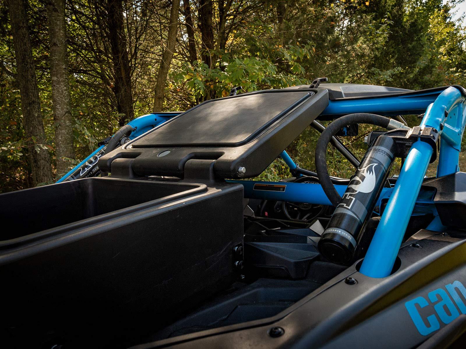 picture of the cargo box/ cooler opened mounted on a can am maverick x3