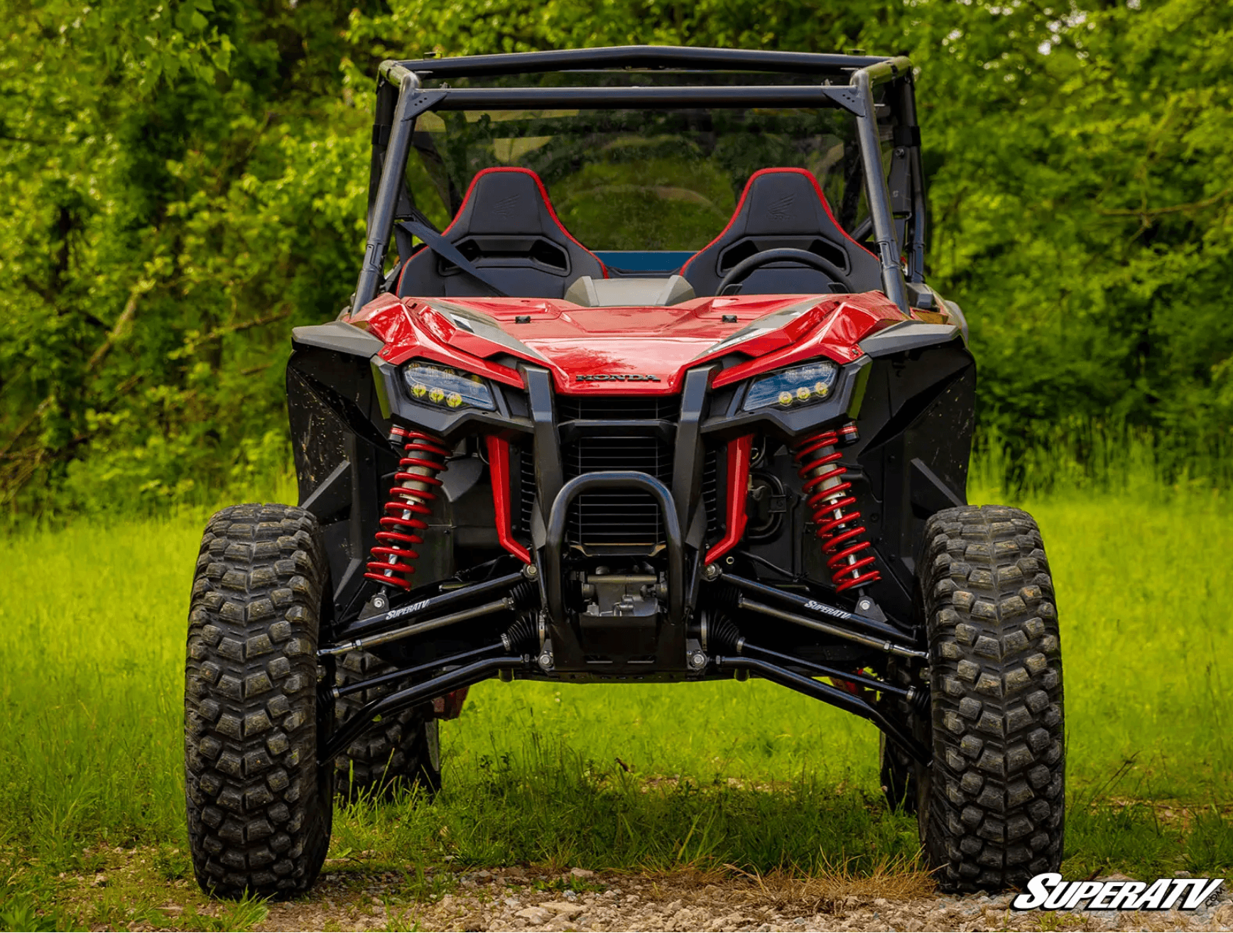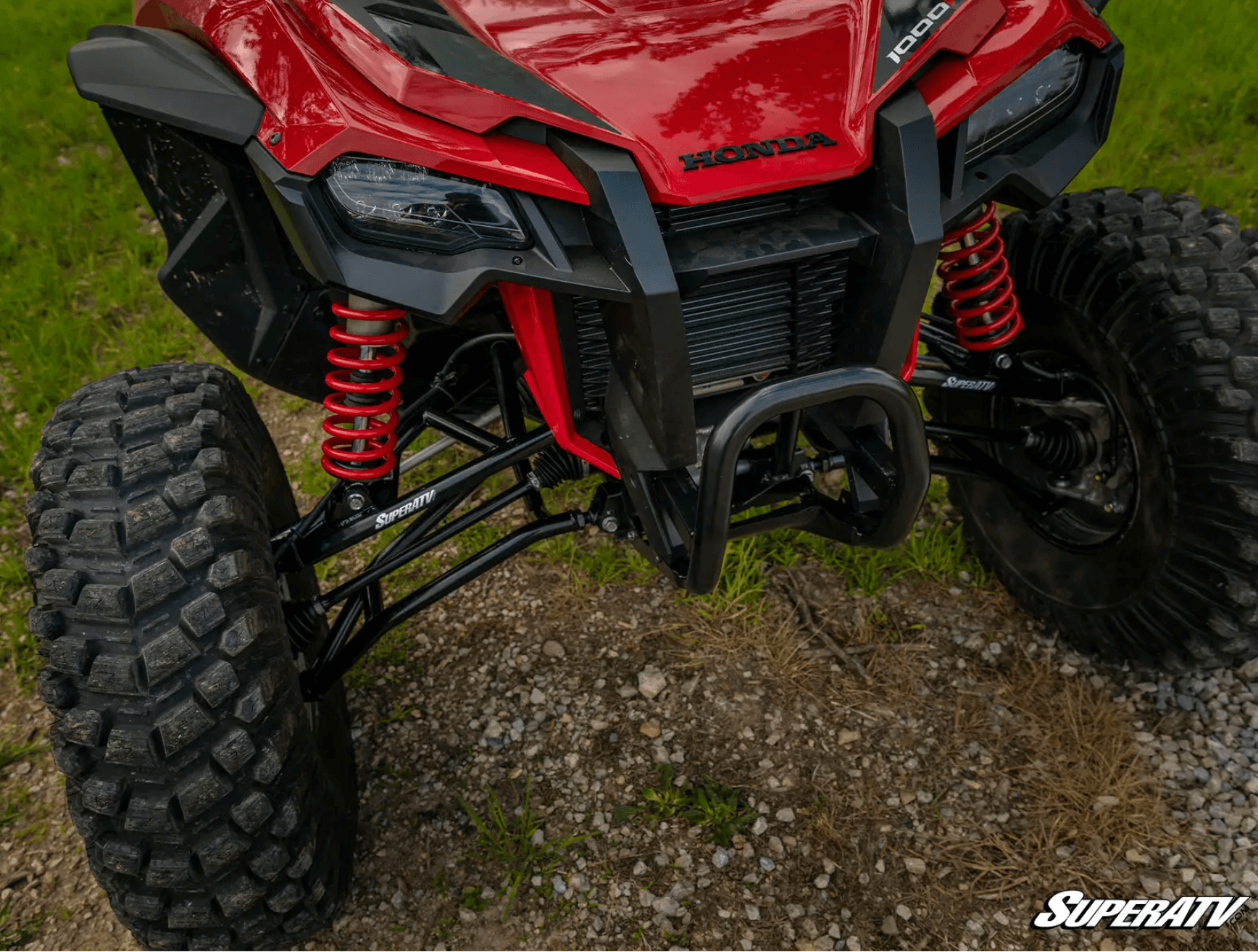 Have you ever found yourself going around a rock or stump while all your buddies sailed over it with no problem? If you answered “yes,” it’s probably time to think about giving that stock suspension an upgrade. SuperATV has just what your Honda Talon 1000R needs with our High Clearance A-Arms. A clever bend design delivers extra ground clearance, and the adjustable pivot blocks allow you to adjust your camber as needed. Top it all off with stronger steel and bigger tubing and you’ve got yourself a truly unmatched set of A-arms.