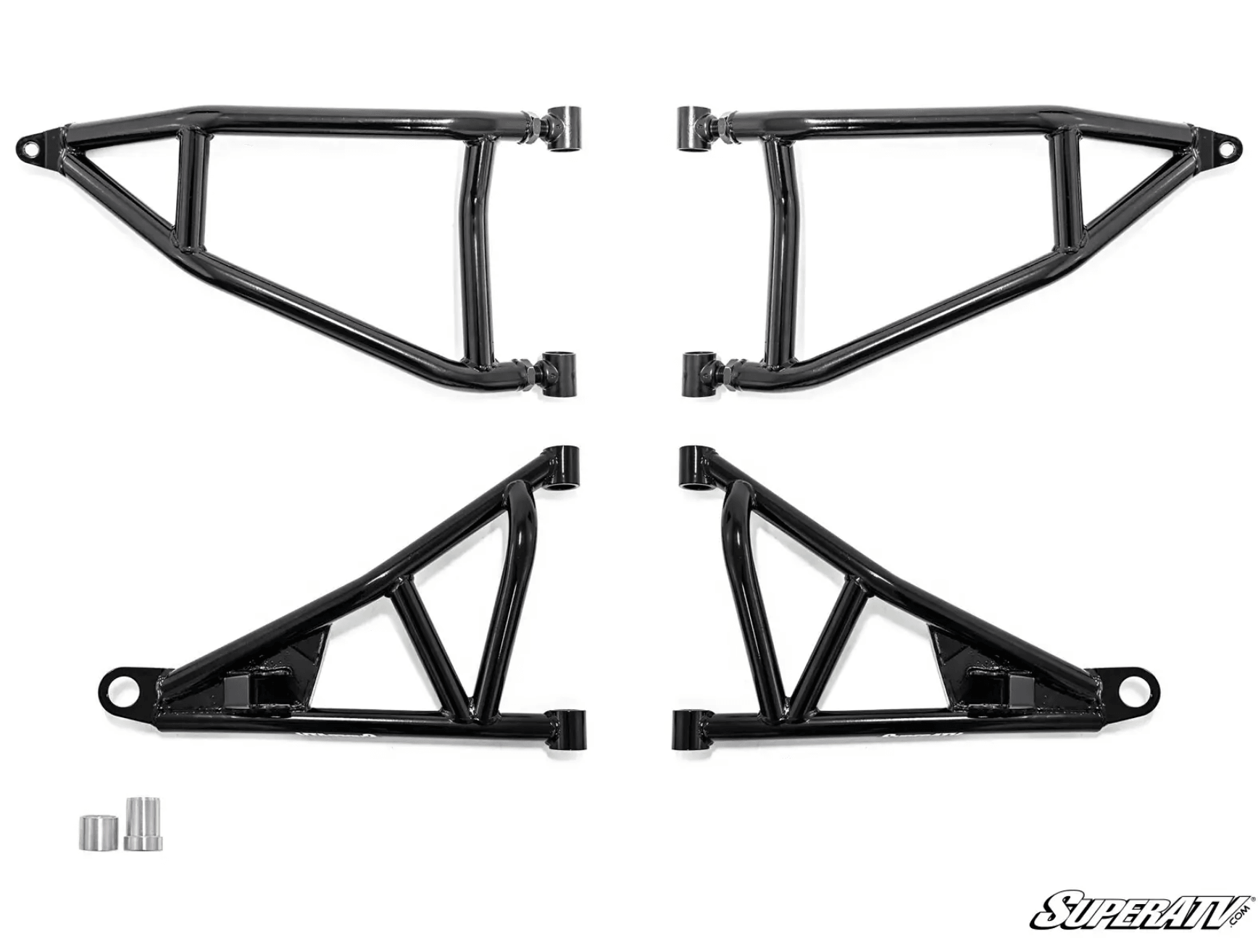 From rugged rock gardens to random stumps and logs scattered throughout your favorite trail, there’s always going to be something in your path trying to tear up your suspension. And if you’re running stock A-arms, chances are it’s going to. That’s why we love these high clearance control arms so much. The unique bend design adds 1.5” of ground clearance, allowing you to sail over those obstacles that used to hang you up.